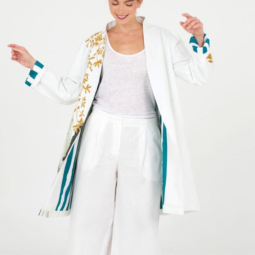 MANTEAU REVERSIBLE LIN&COTON BRODÉ