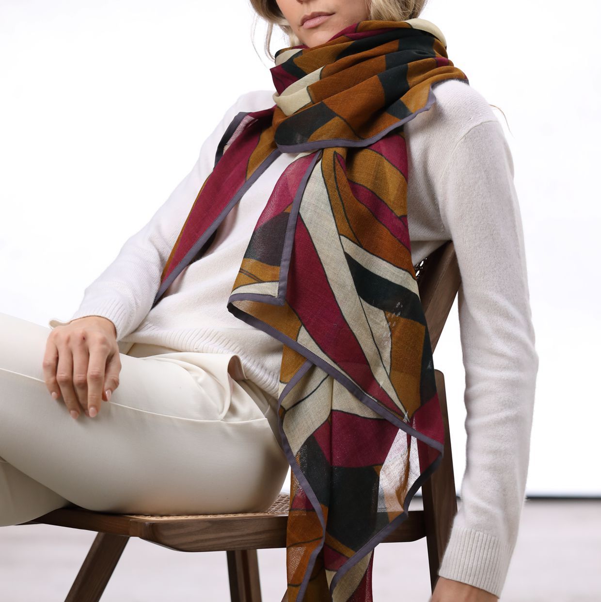 ECHARPE 100% ETAMINE DE LAINE COUSUE MAIN